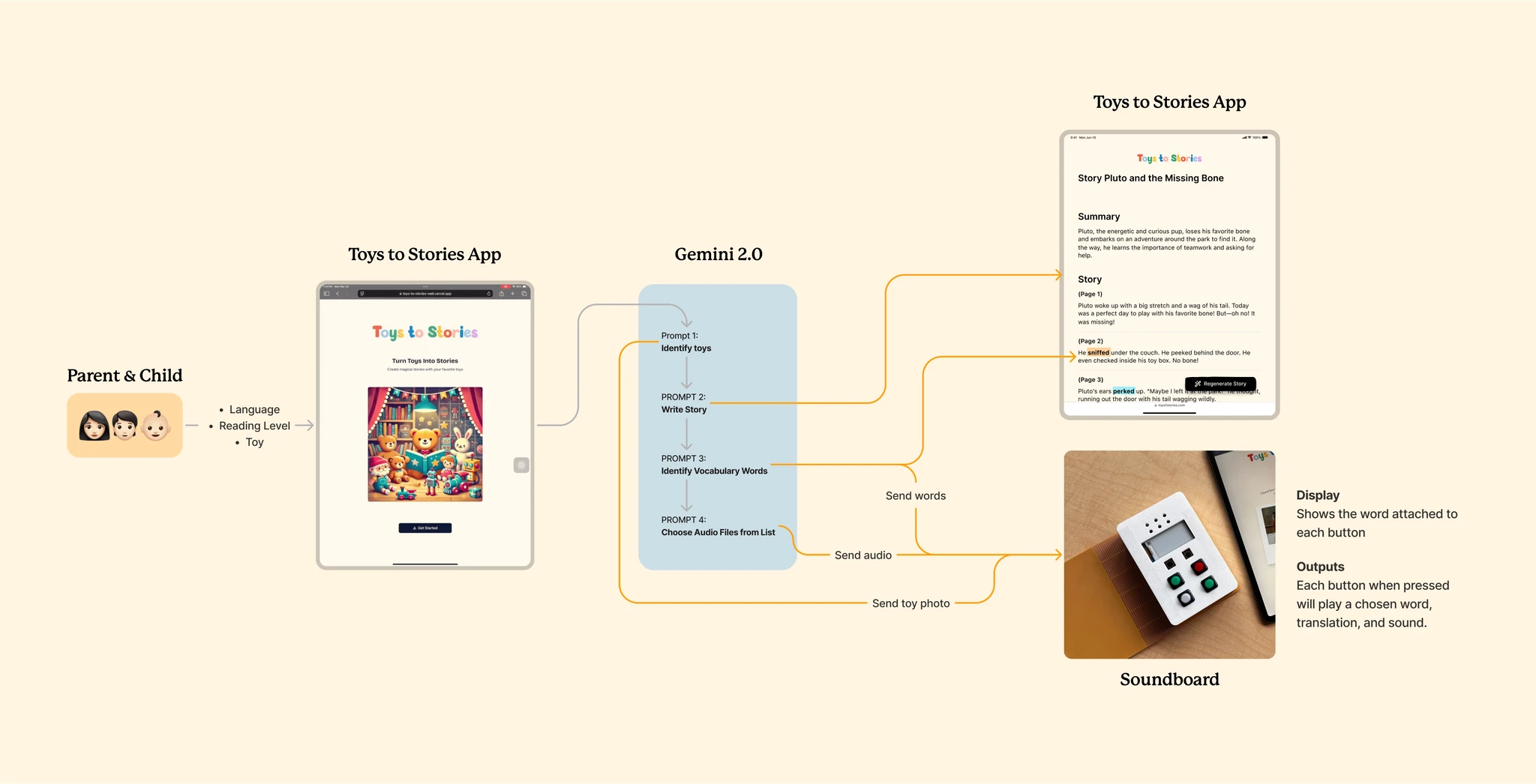 During testing, we saw the power of design when the child lit up with joy as she experienced her toy coming to life in the story.