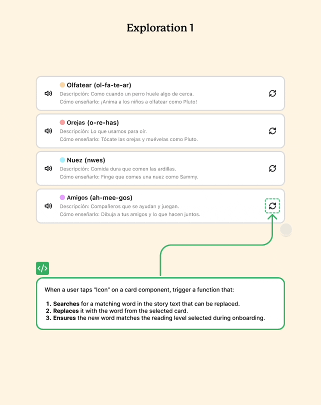 Iteration: Added the option for parents to swap out vocabulary words during story preview, letting them replace words their child already knows.