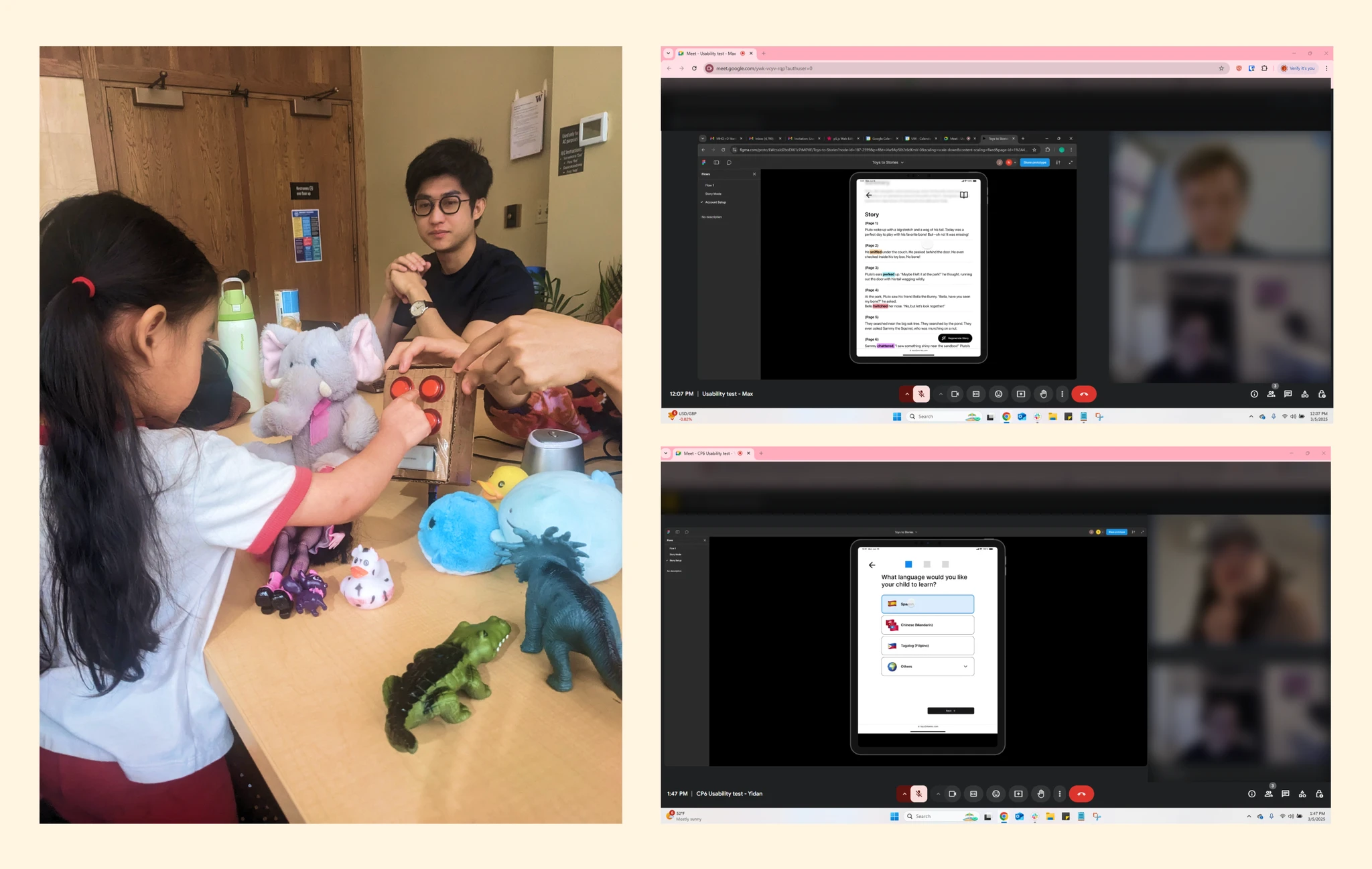 The team conducted 3 rounds of testing with bilingual parents and their children, observing how they used the app. We focused on engagement, learning value, and where they wanted more control.